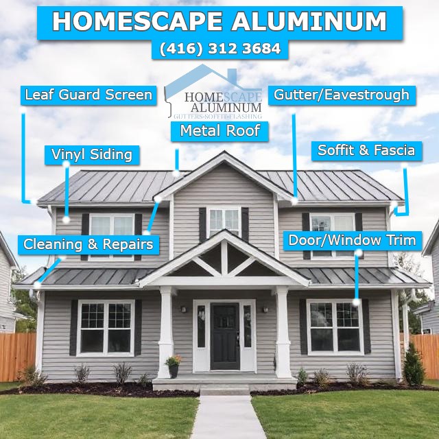 Homescape Aluminum has over 15 years experience in the sheet metal and roofing systems industry. Specializing in gutters, soffit, siding and custom aluminum products. Our experienced technicians can provide advice and solutions based on your needs. We can also connect you with our qualified partners in the construction industry to complete any project you may have from roofing and siding to windows and doors. Proudly serving the Greater Toronto Area.